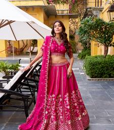 Rani pink chinon silk zari work lehenga choli set with blouse and dupatta