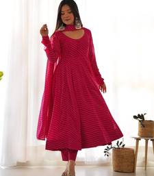 Rani pink leheriya printed fox georgette fully stitched flared anarkali suit set