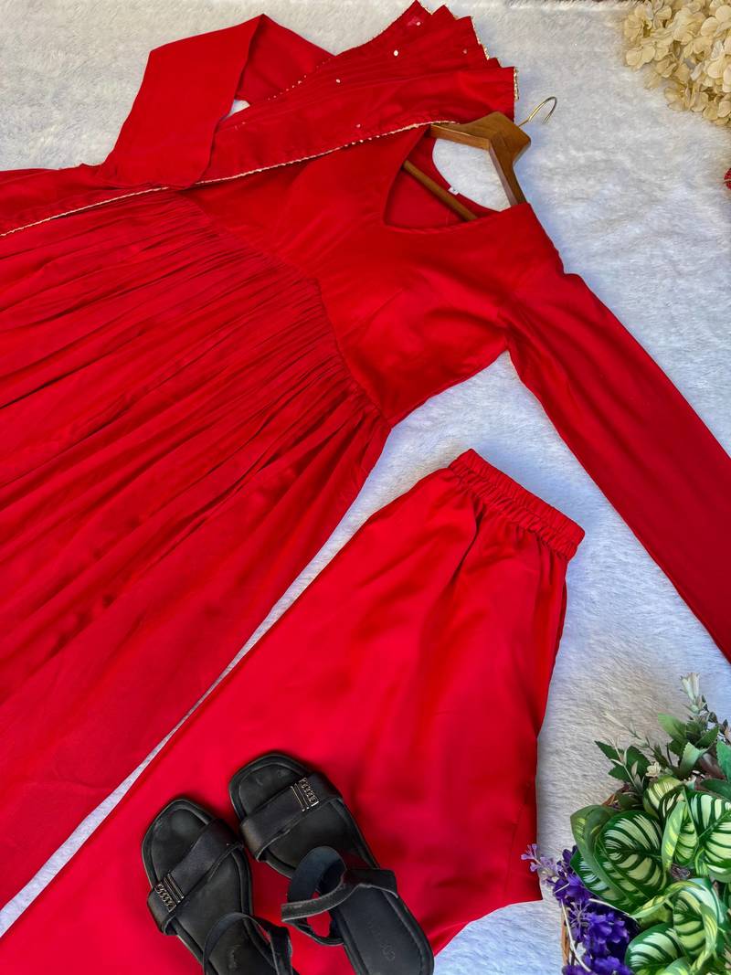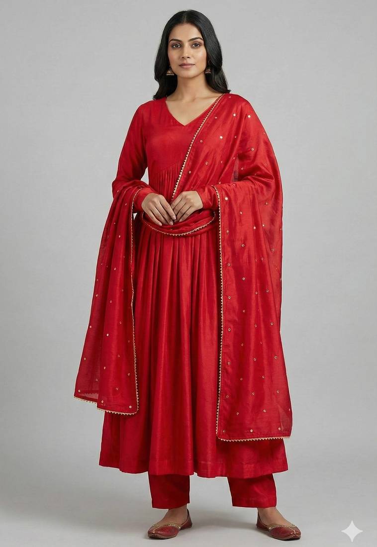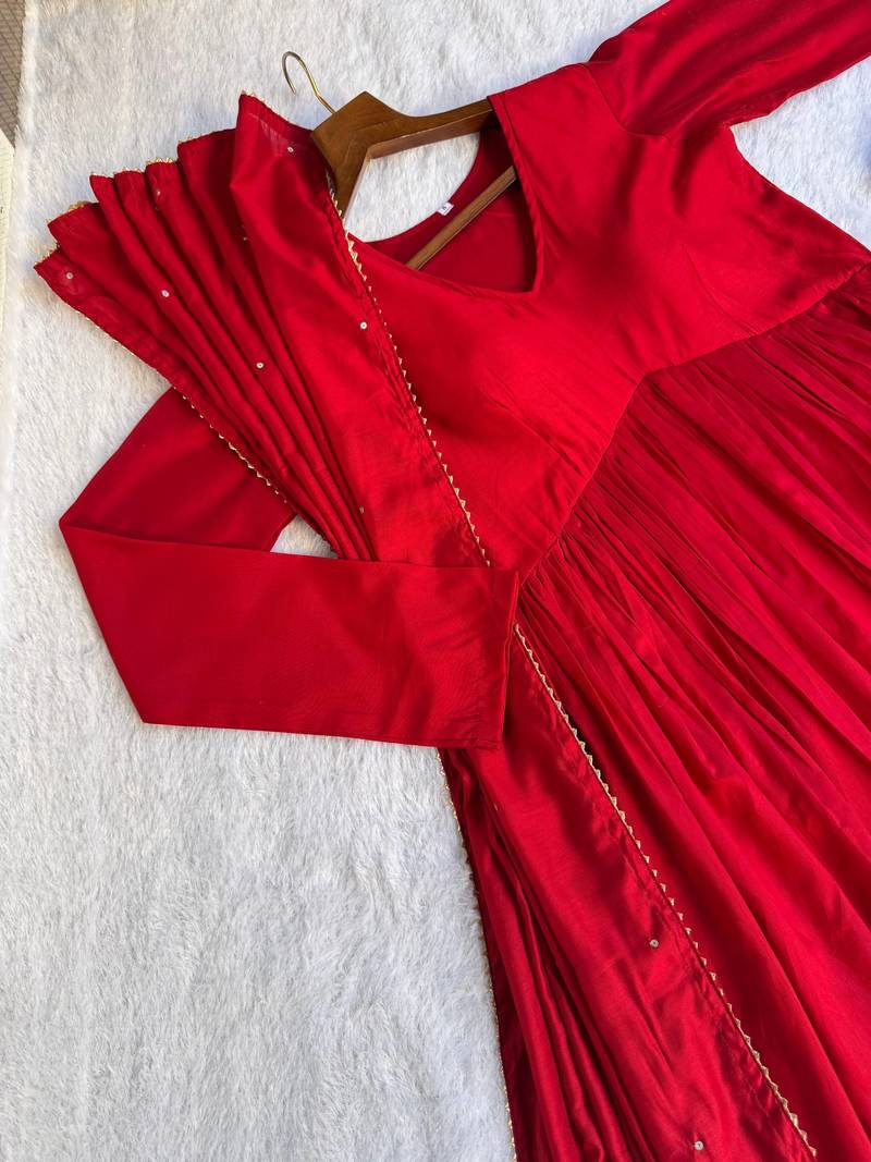 | Product Name | Red Chanderi Cotton Hand Work Gown With Pant, Fully Stitched Ethnic Wear | |