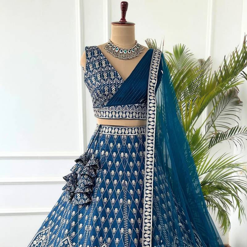 | Product Name | Royal Blue Faux Georgette Sequins & Zari Embroidered Lehenga Choli | |