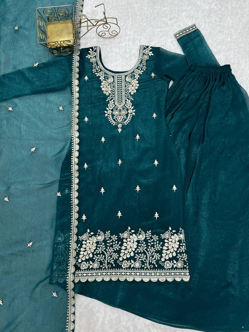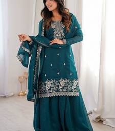 | Product Name | Teal Green Embroidered Sequins Thread Zari Work Soft Crunchy Silk Fully Stitched Kurta Sharara Set | |