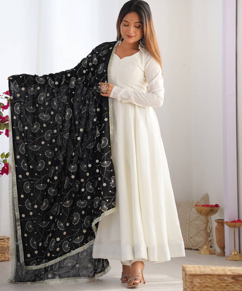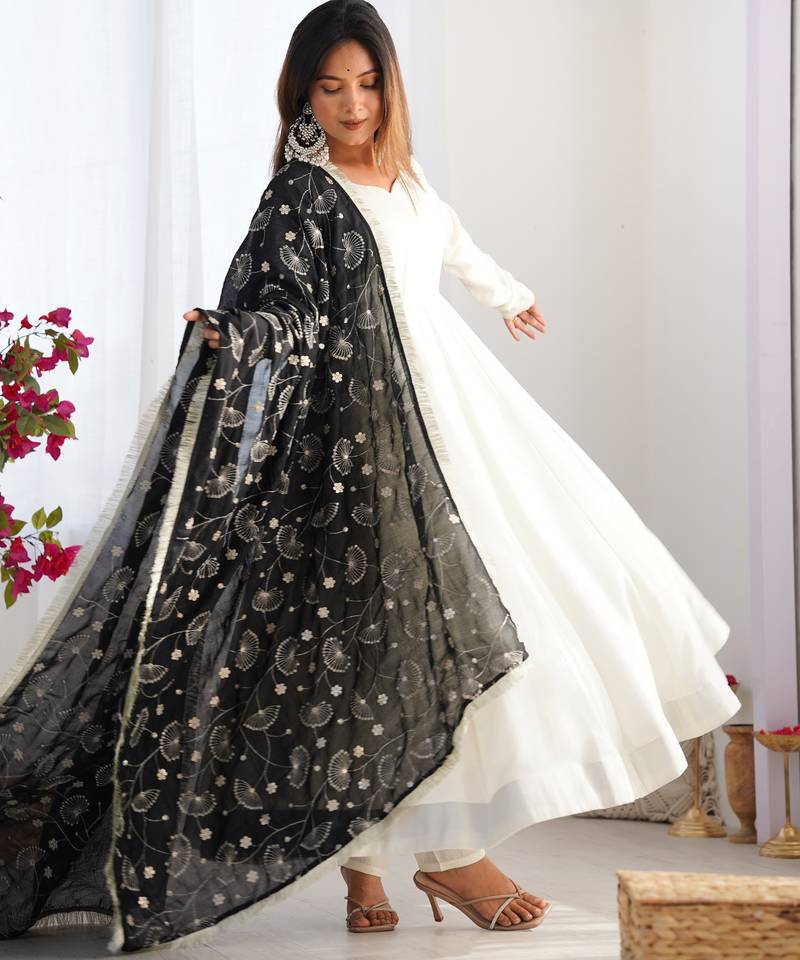 Product Name | Vichitra Silk Anarkali With 4 Mtr Flair, Fancy Lace Dupatta And Stitched Pant Set, Fully Stitched Ready To Wear | |