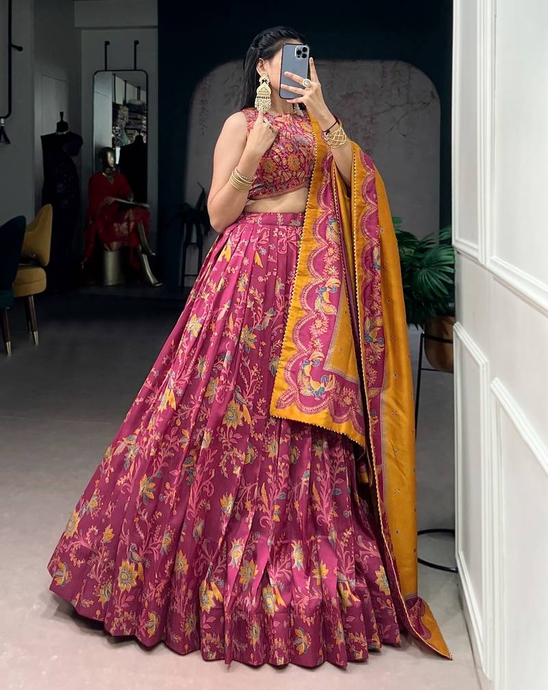 Wine foil printed tasar silk lehenga choli with dupatta