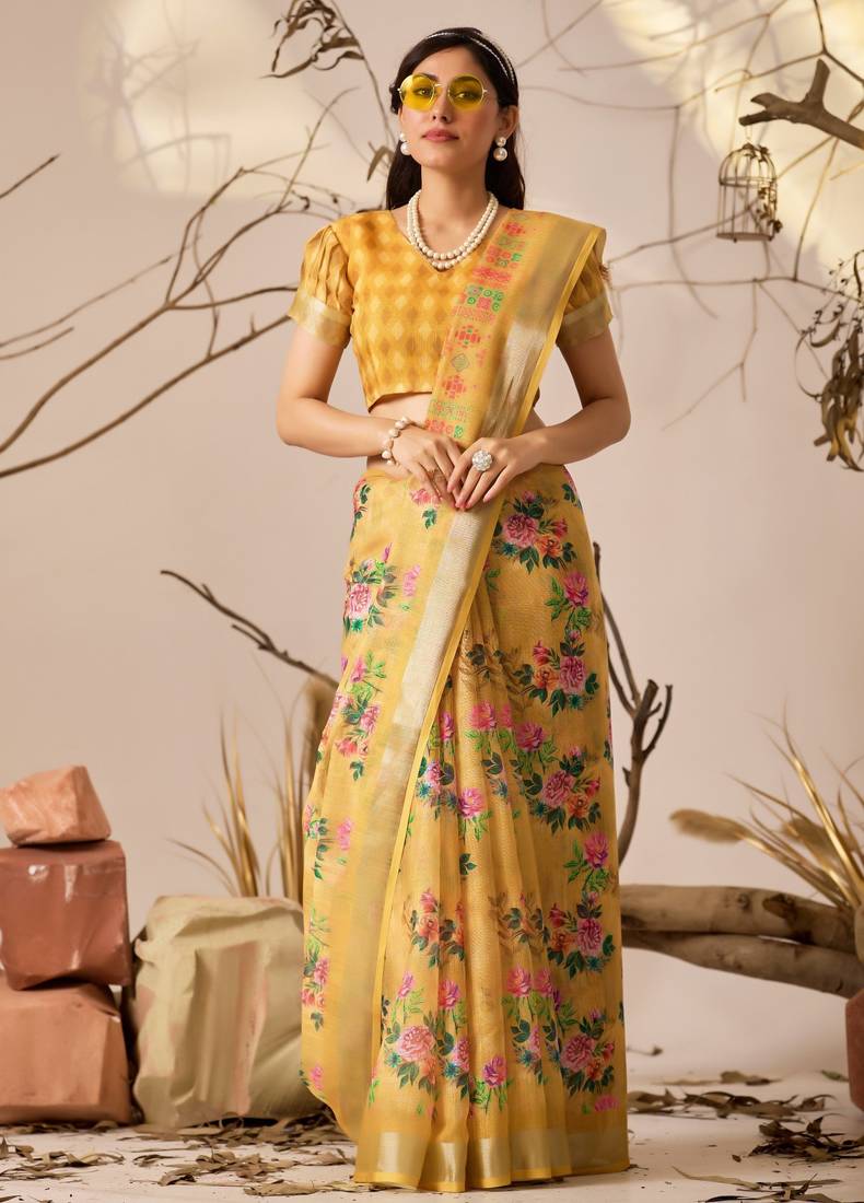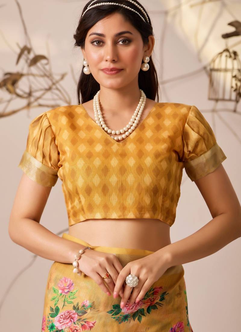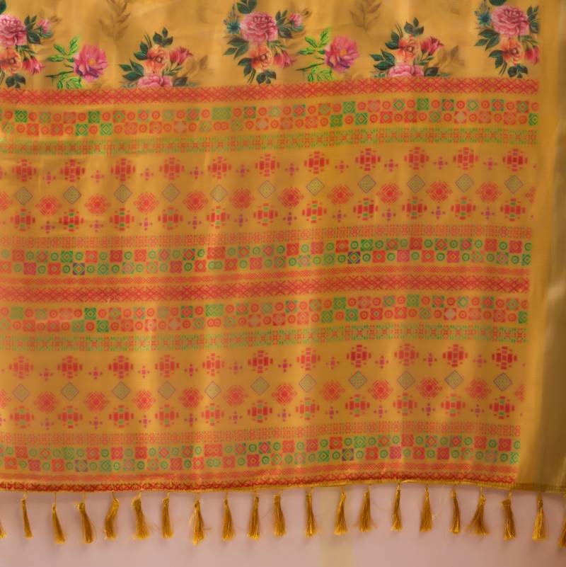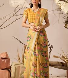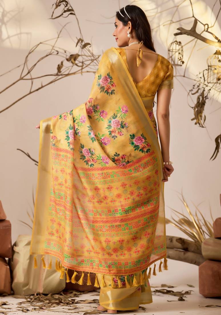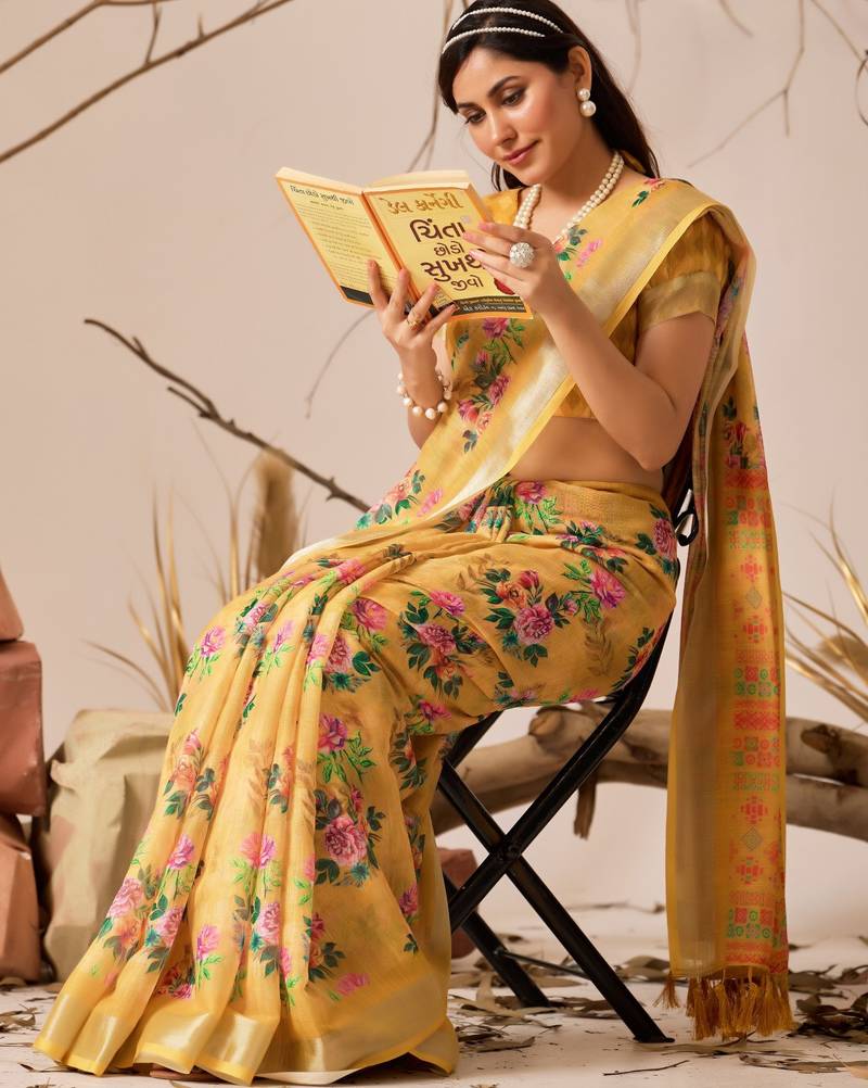 Product Name Yellow Linen Cotton Saree With Digital Floral & Patola Print And Contrast Border