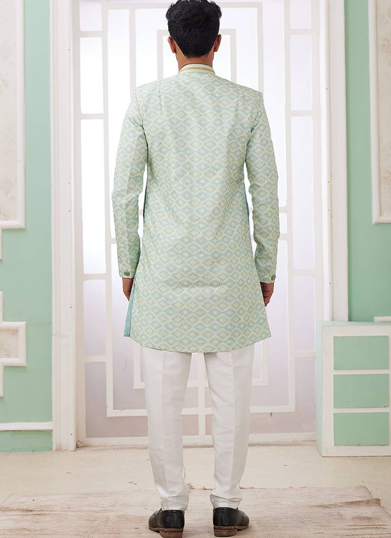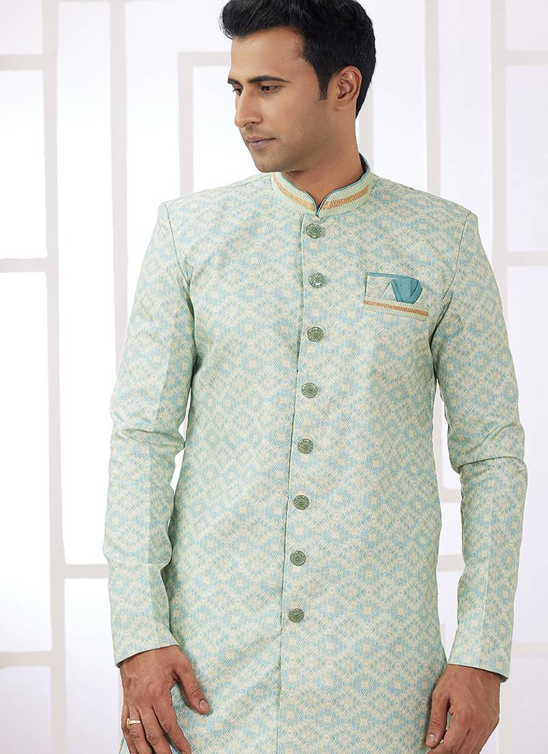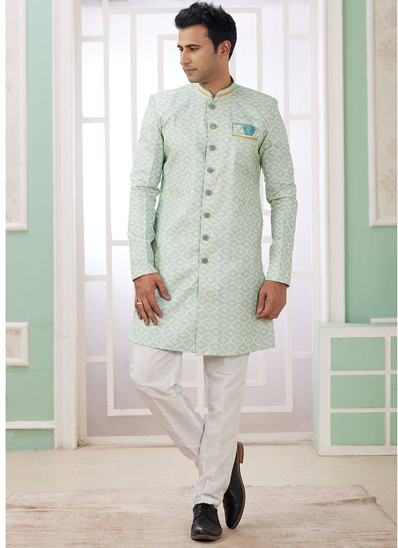 Product Name Banarasi Jacquard Light Green Festival Wear Pattern Pc Work Readymade Indo Western