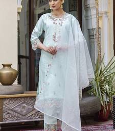 Viscose roman silk sea green casual wear embroidery work kurta set