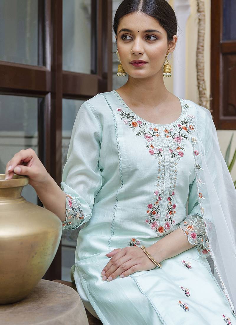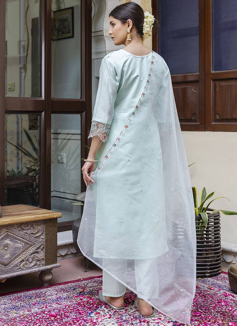 | Product Name | Viscose Roman Silk Sea Green Casual Wear Embroidery Work Kurta Set | |