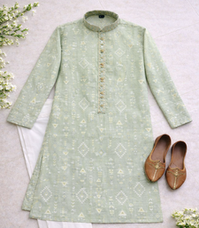 Green color jaquard with embroidery patti slik kurta payjama set