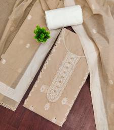Beige cotton silk embellished unstitched dress material