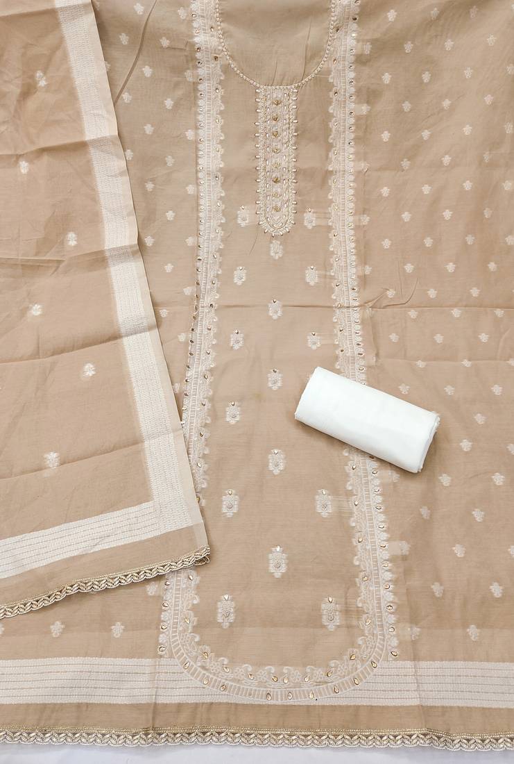 | Product Name | Beige Cotton Silk Embellished Unstitched Dress Material | |