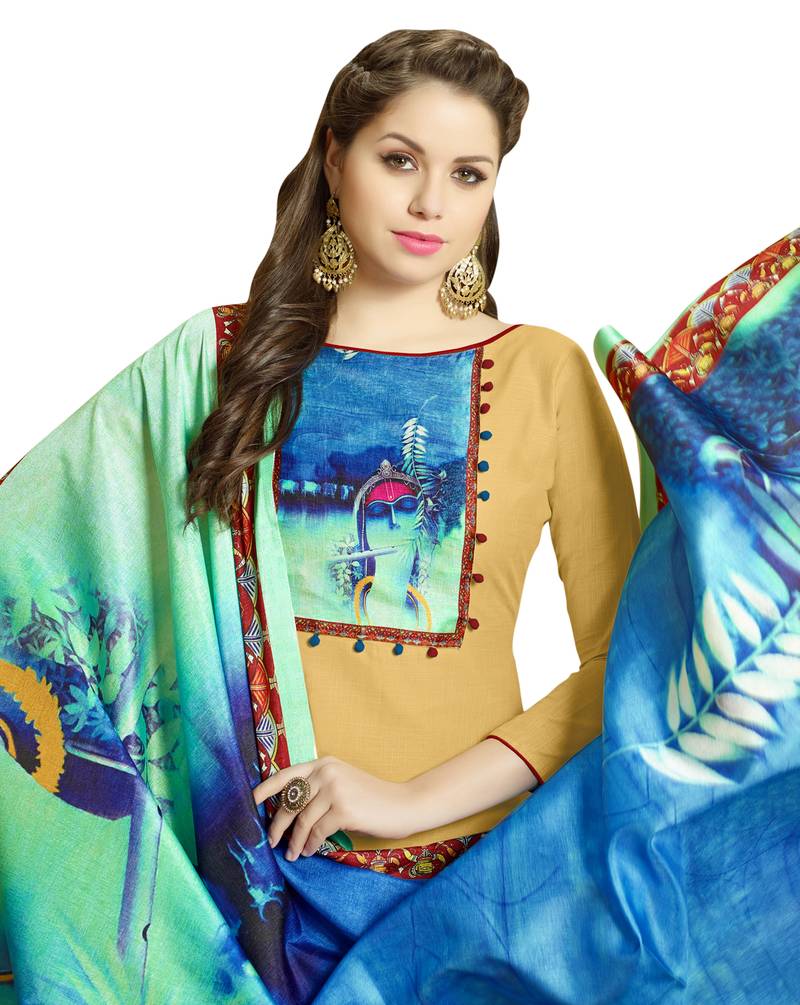 Beige digital print cotton salwar unstitched