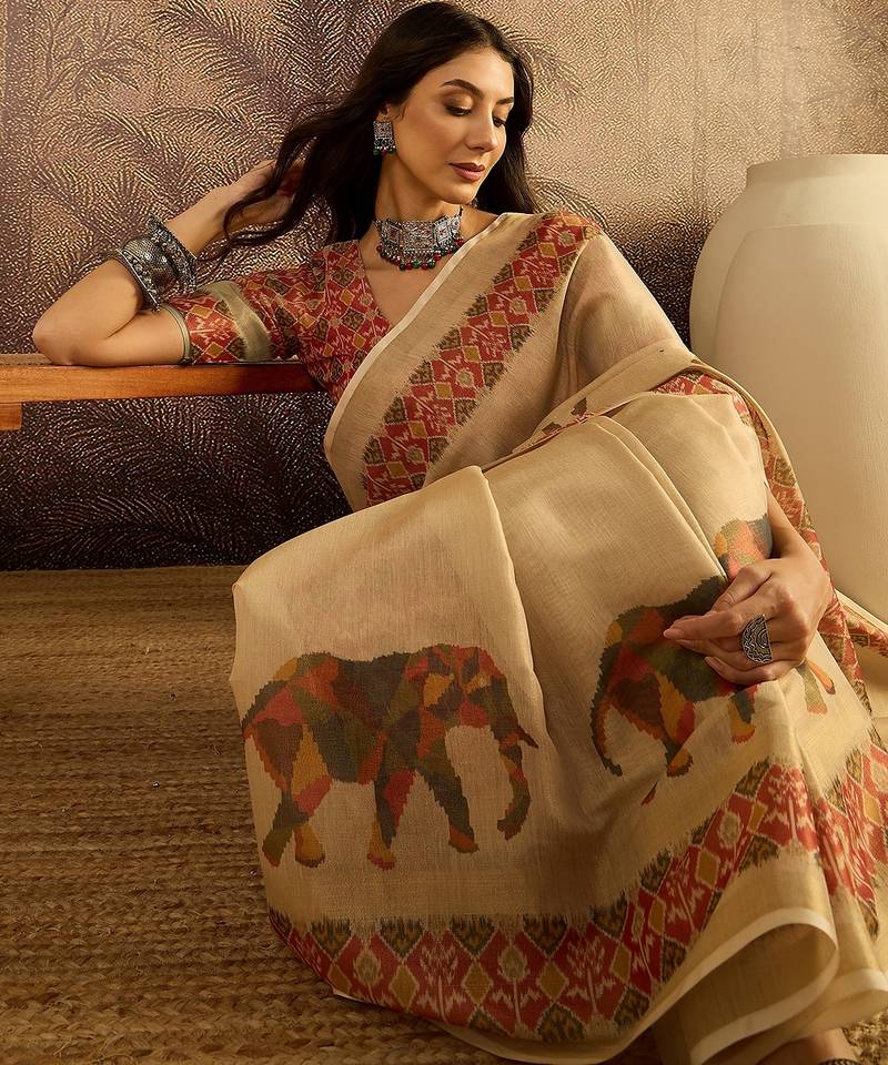 | Product Name | Beige Silk Cotton Printed Saree With Unstitched Blouse Piece | |