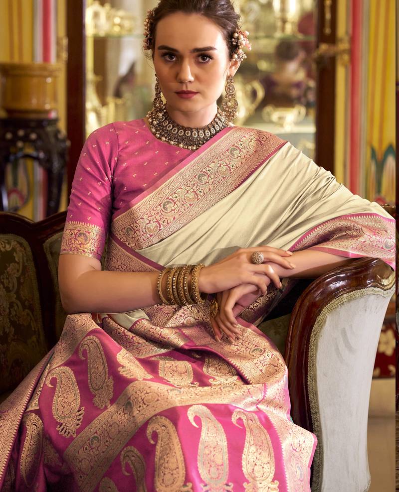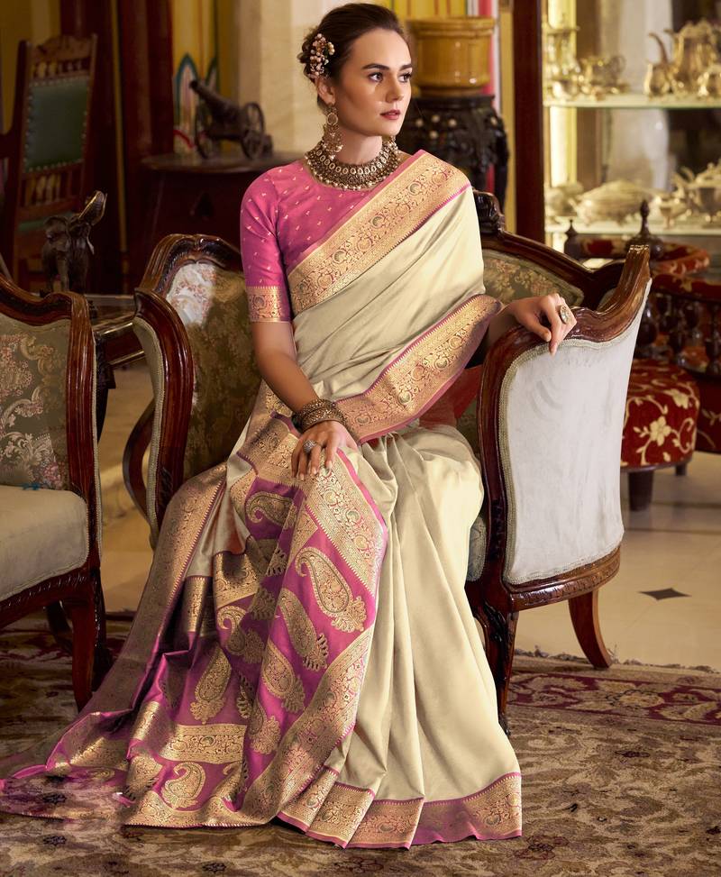 Product Name Beige Soft Silk Blend Woven Saree With Unstitched Blouse Piece
