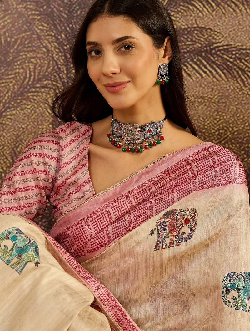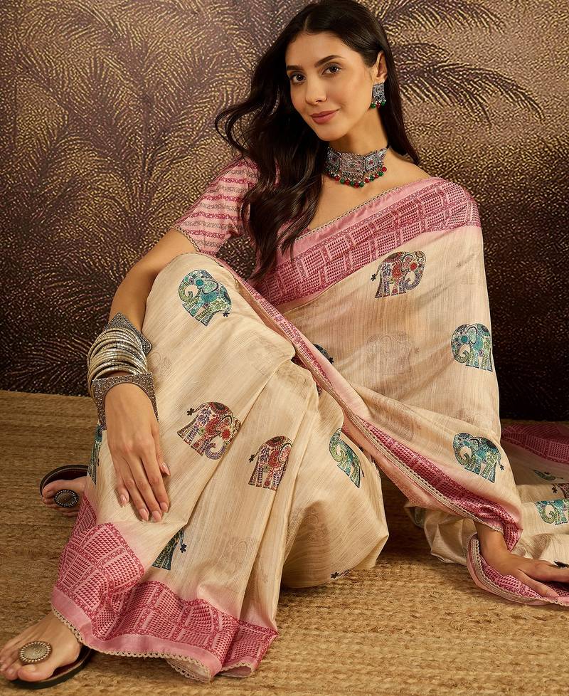 | Product Name | Beige Tussar Silk Printed Saree With Unstitched Blouse Piece | |