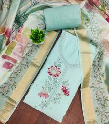 Blue cotton silk embellished unstitched dress material