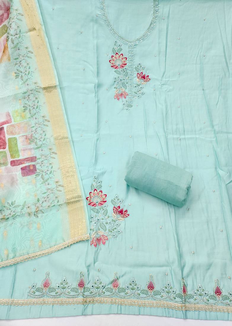 | • | Dupatta | : | Color- Sky Blue / Fabric- Organza |