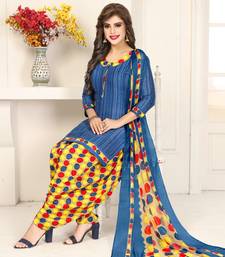 Blue printed crepe salwar unstitched