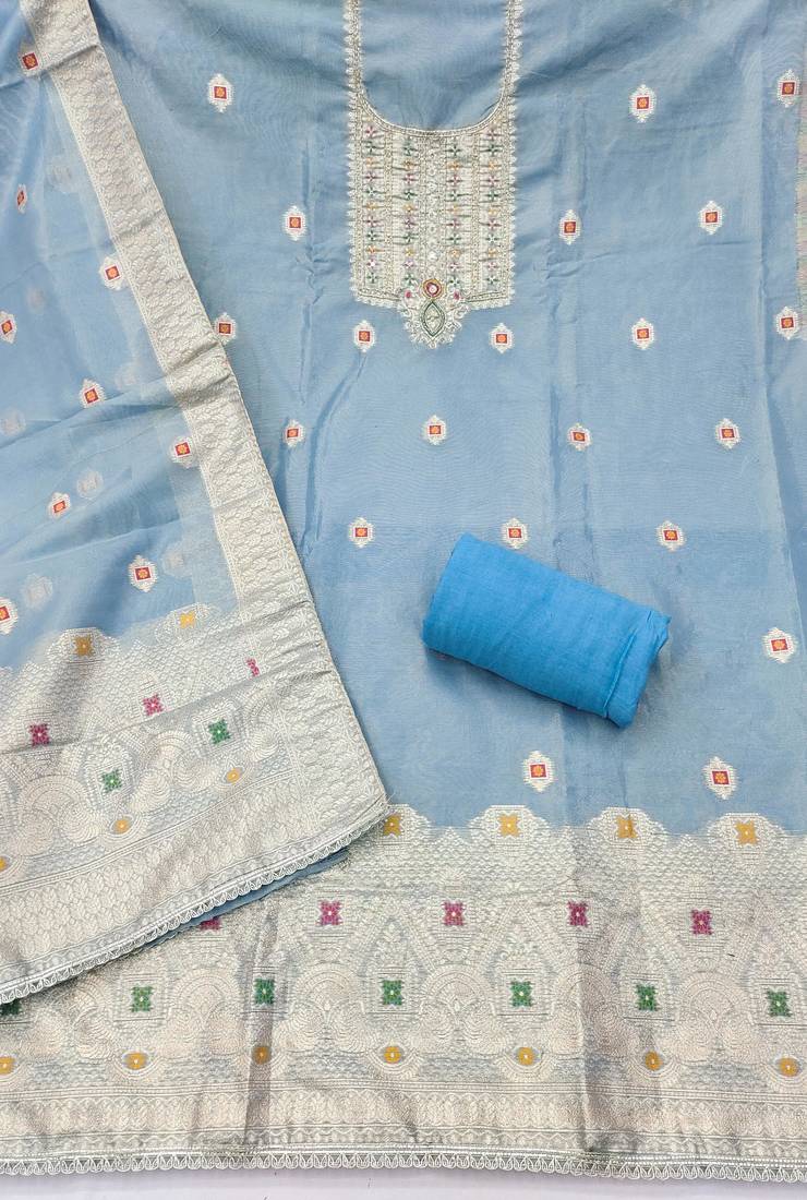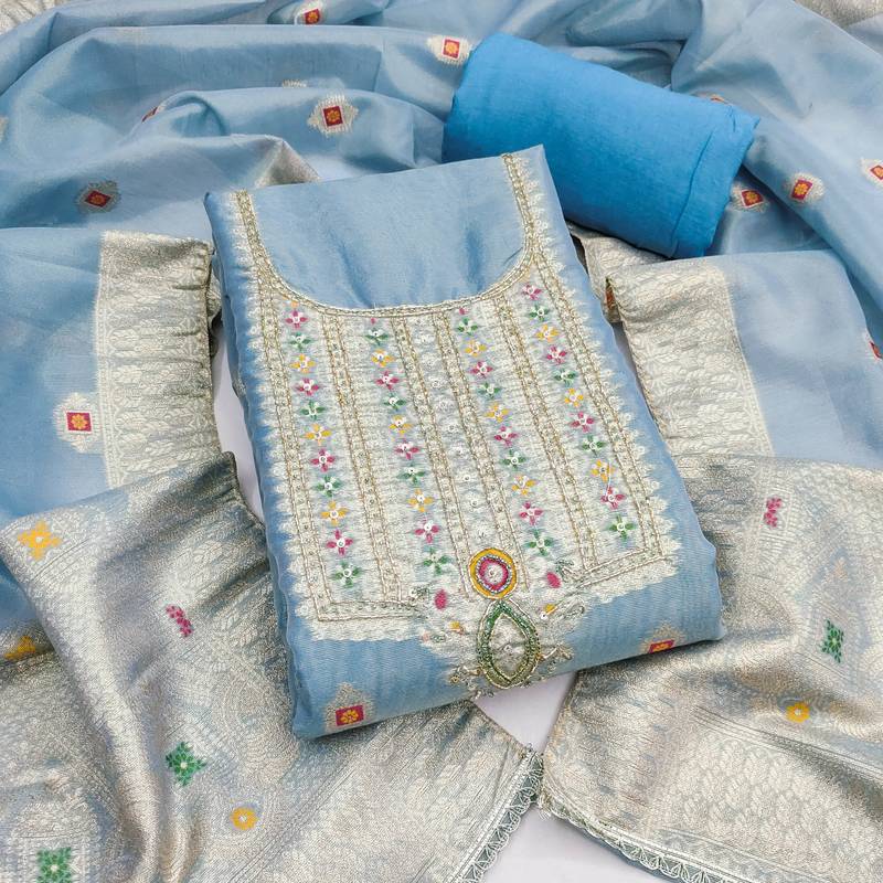 | Product Name | Blue Shimmer Banarasi Woven Unstitched Dress Material | |