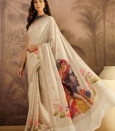 Cream cotton printed saree with unstitched blouse piece