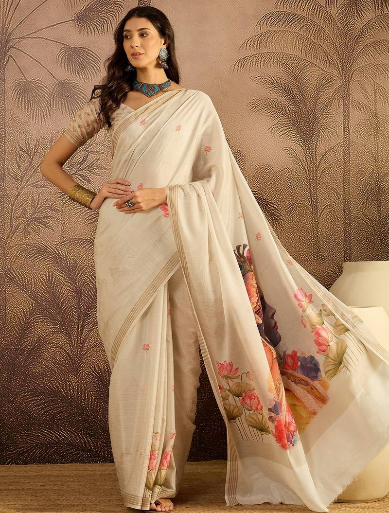 | Product Name | Cream Cotton Printed Saree With Unstitched Blouse Piece | |