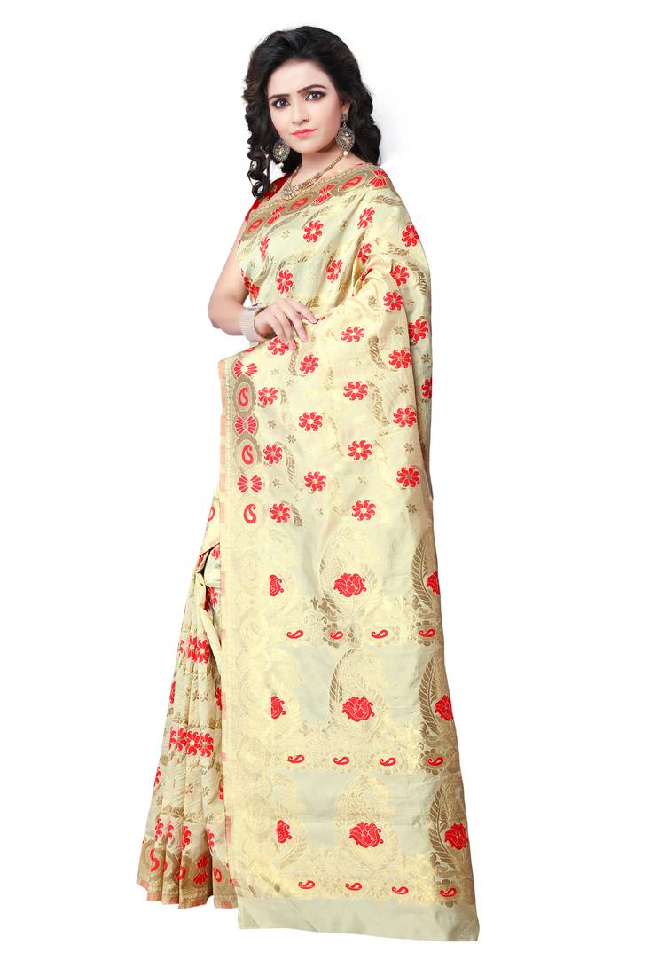 Kimisha Presents The Beautifully Designed Lichi Silk Woven Saree. This Sari Contains Zari Print & Comes With Matching Lichi Silk Blouse Piece. Work, Design And Fabric Of This Sari Gives Elegant And Classy Look To You. Wear It At Any Occasion & Pair It With Matching Accessory To Get Complimented For Your Impressive Choice.