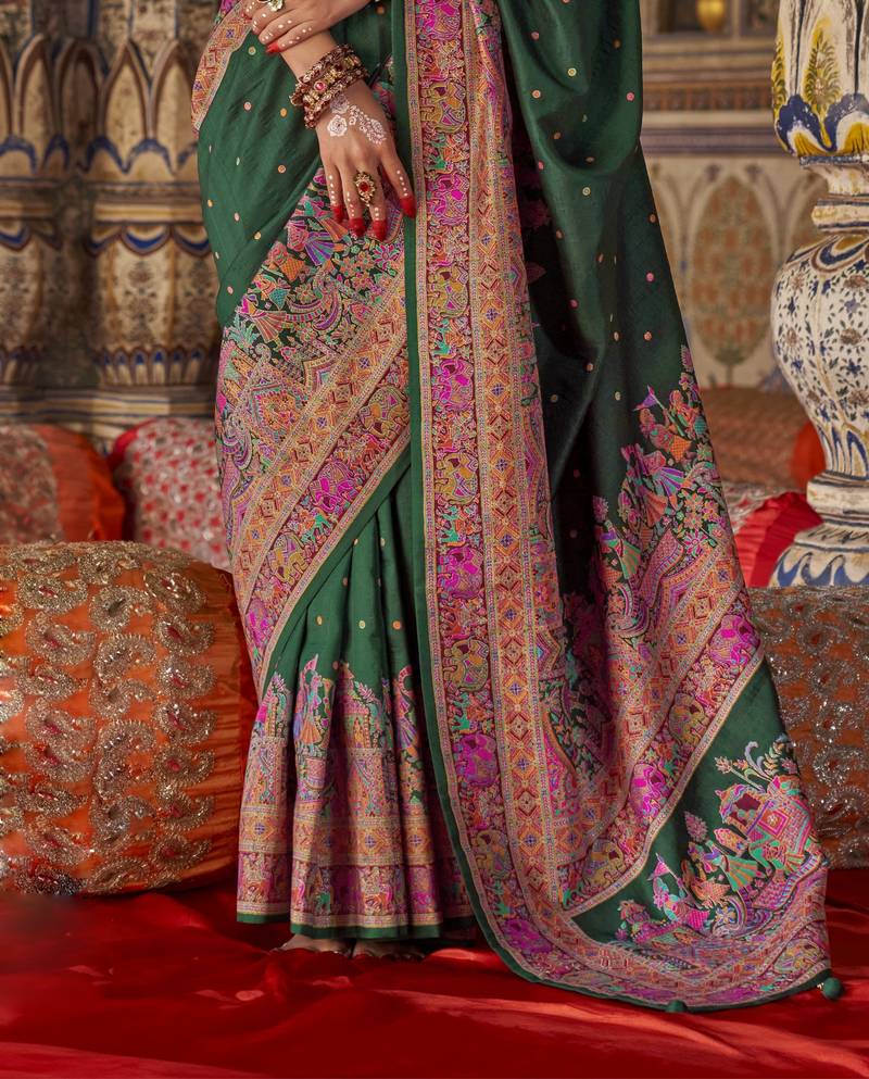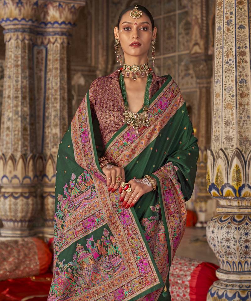 | • | Saree | : | Color- Dark Green / Fabric- Silk |