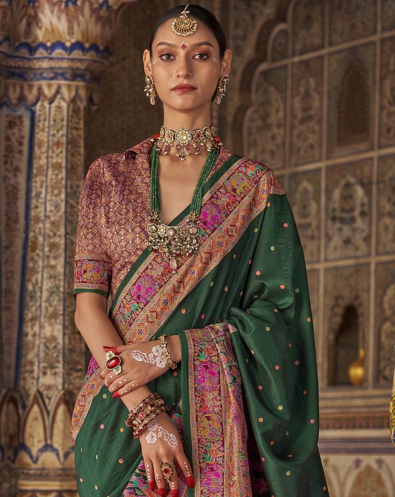 | Product Name | Dark Green Silk Printed Saree With Unstitched Blouse Piece | |