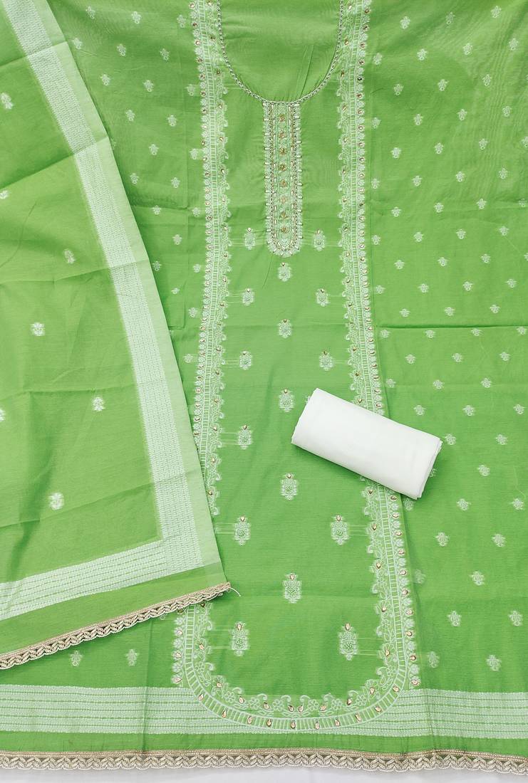 | Product Name | Green Cotton Silk Embellished Unstitched Dress Material | |
