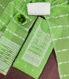 Green cotton silk embellished unstitched dress material