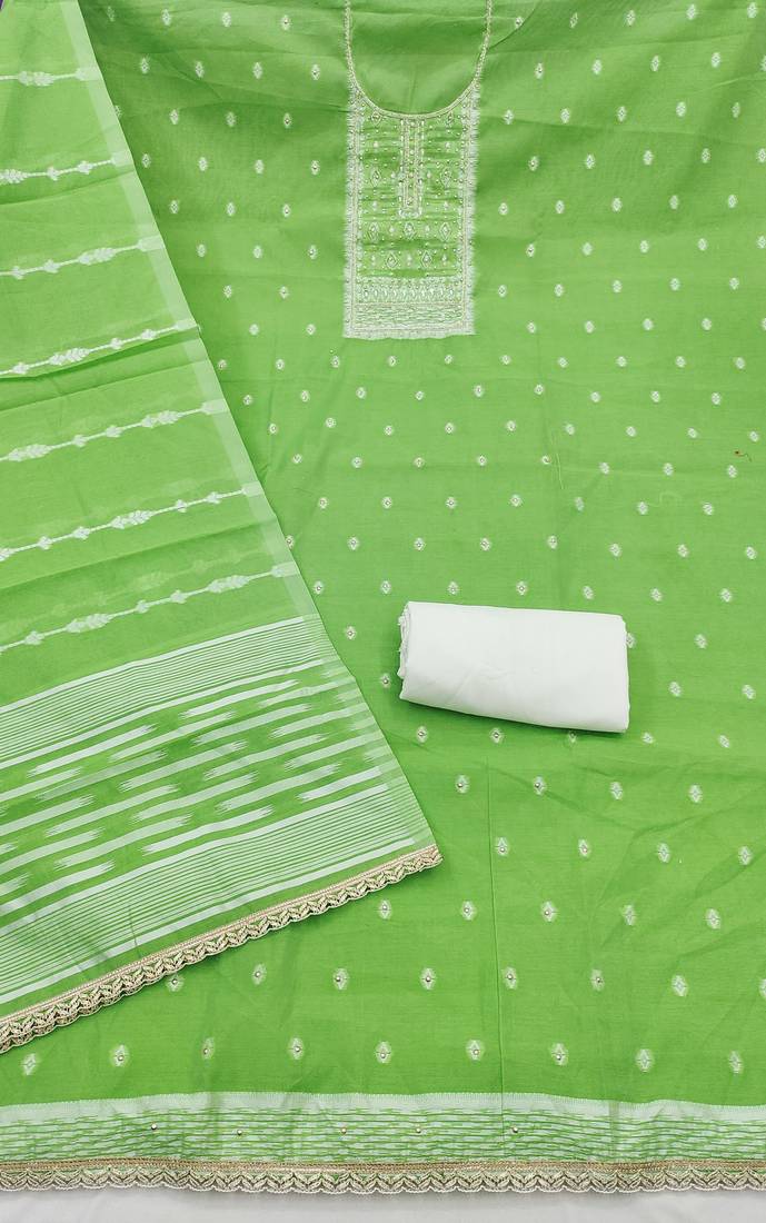| Product Name | Green Cotton Silk Embellished Unstitched Dress Material | |