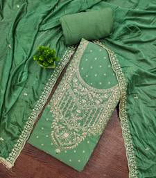 Green modal chanderi embroidered unstitched dress material