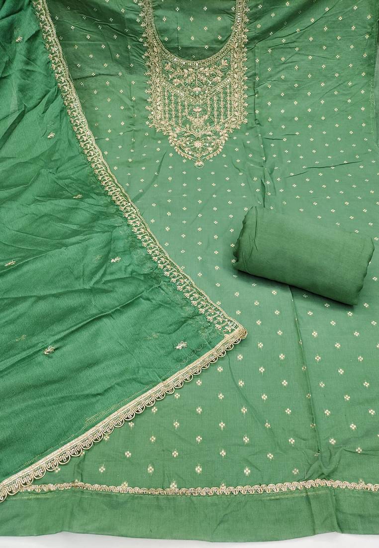 | Product Name | Green Modal Chanderi Embroidered Unstitched Dress Material | |