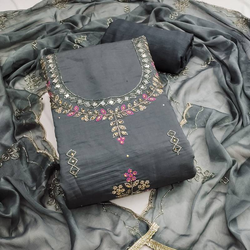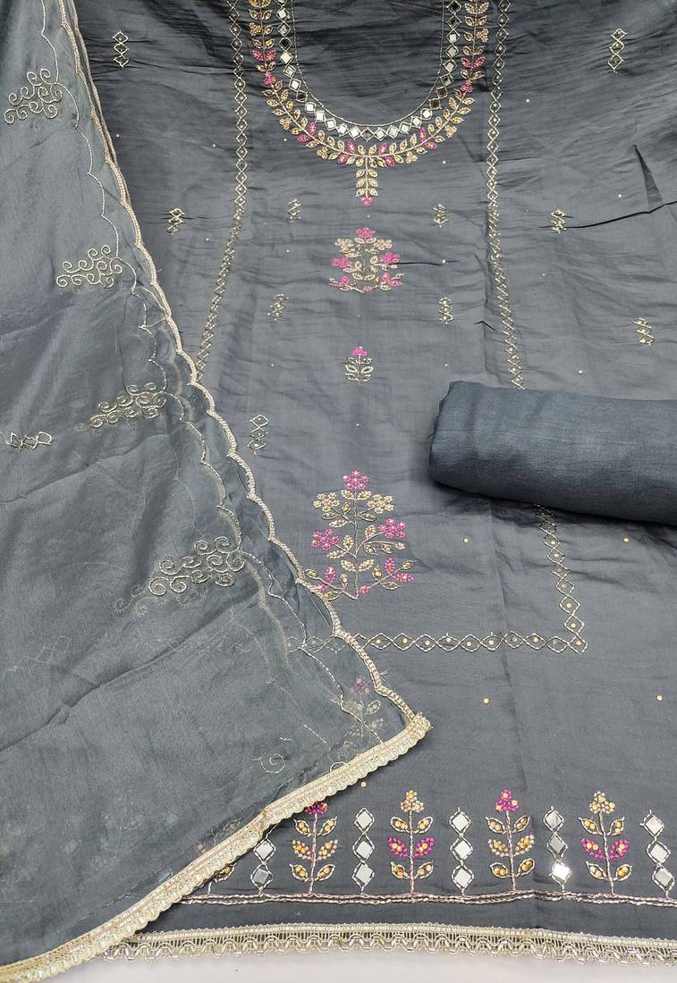 | Product Name | Grey Cotton Silk Embroidered Unstitched Dress Material | |