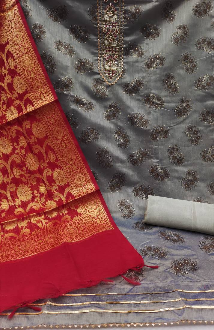 | Product Name | Grey Modal Chanderi Embellished Unstitched Dress Material | |