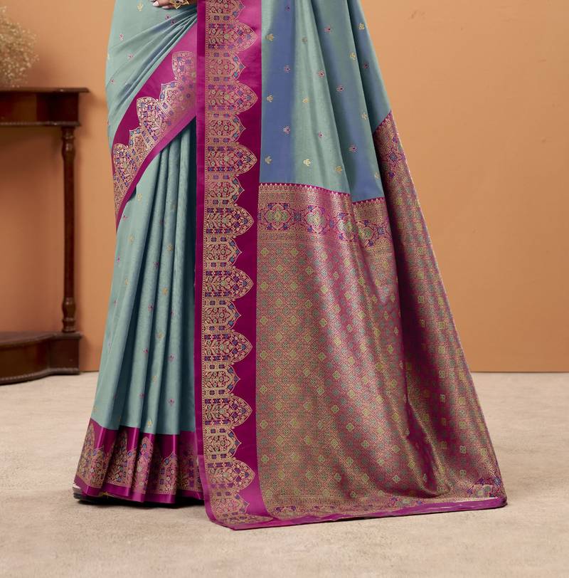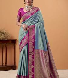 Greytin silk blend woven saree with unstitched blouse piece