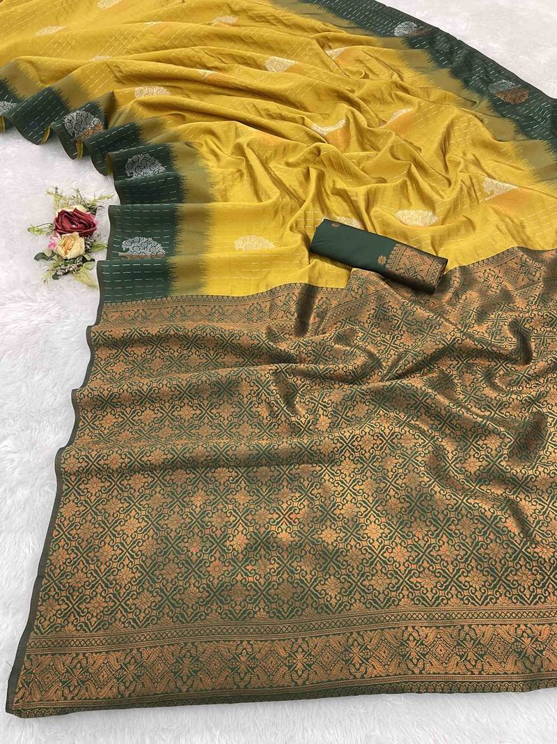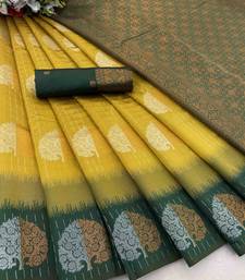Lime yellow banarasi art silk woven saree with unstitched blouse piece