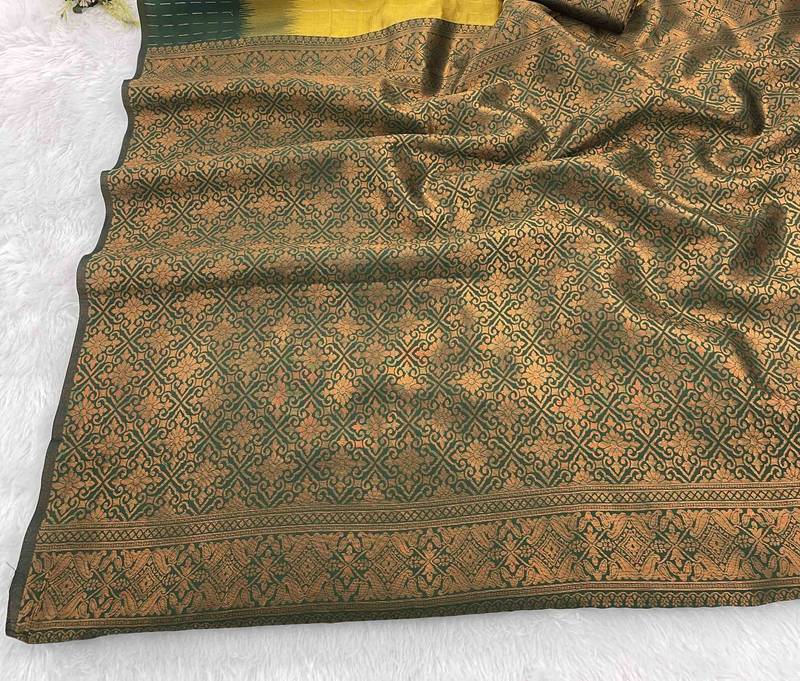 | • | Saree | : | Color- Dark Lime / Fabric- Faux Banarasi Silk |