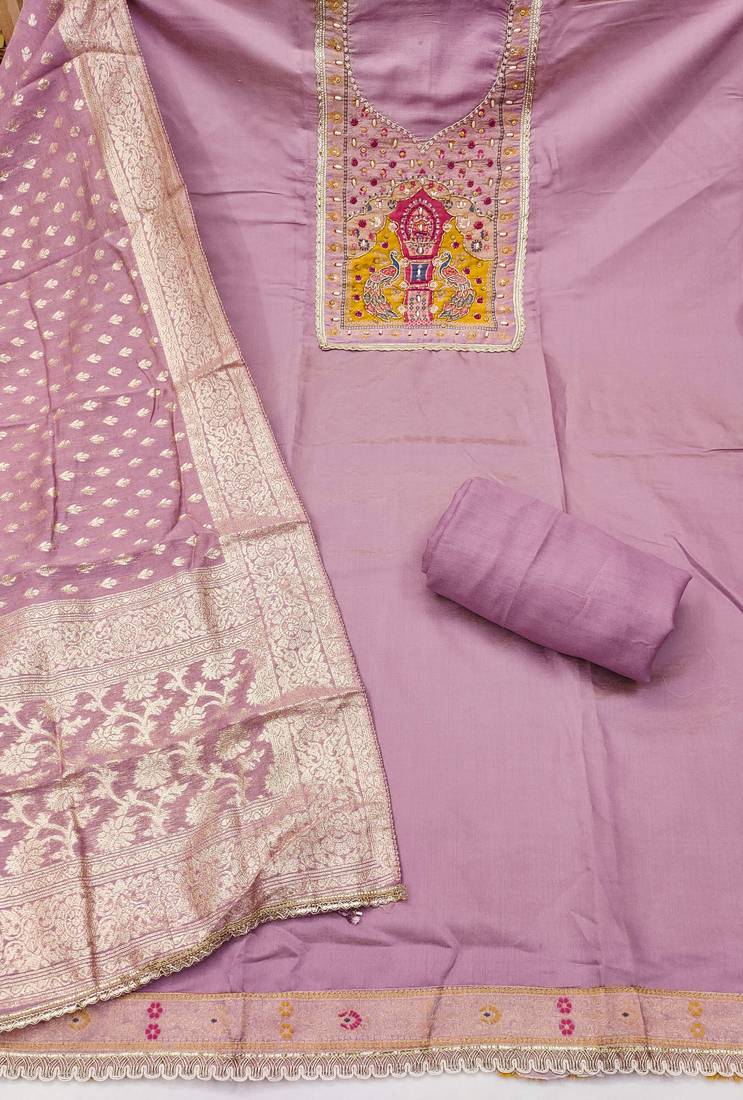 | Product Name | Lavender Cotton Silk Embellished Unstitched Dress Material | |