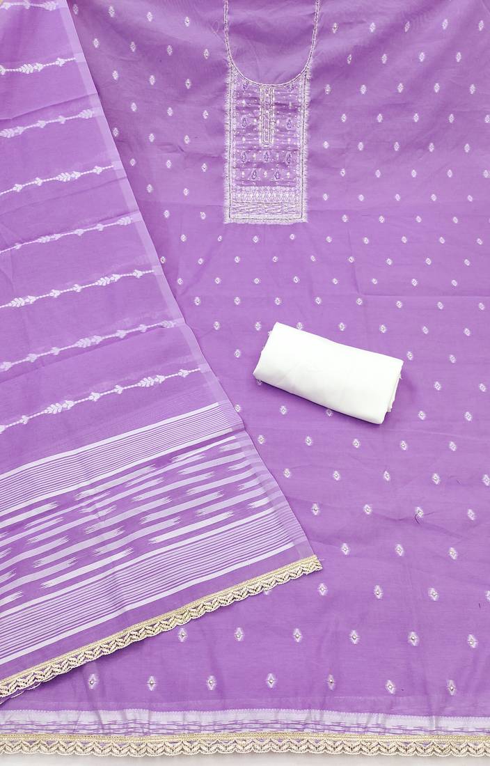 | Product Name | Lavender Cotton Silk Embellished Unstitched Dress Material | |