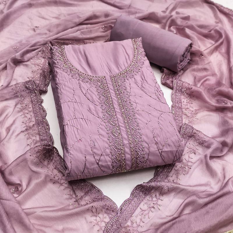 | Product Name | Lavender Cotton Silk Embroidered Unstitched Dress Material | |