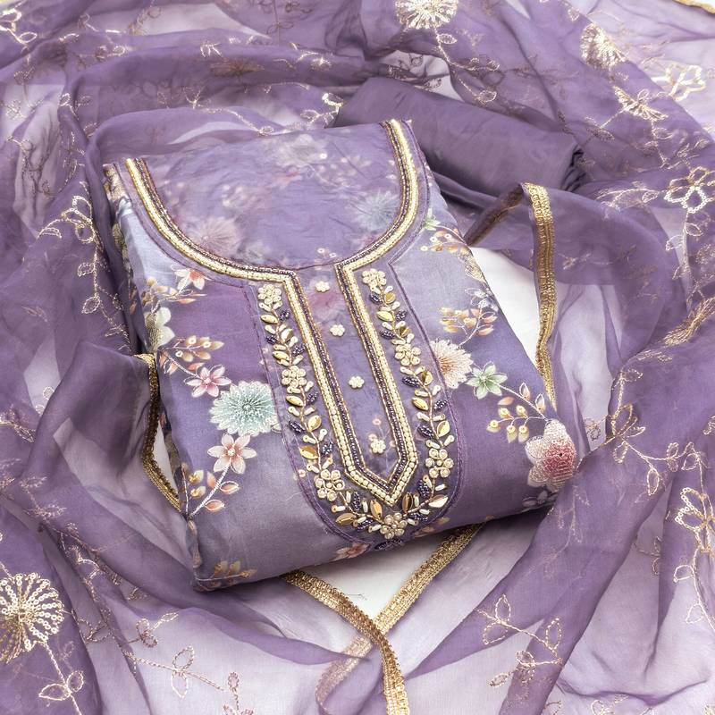| Product Name | Lavender Organza Printed Unstitched Dress Material | |
