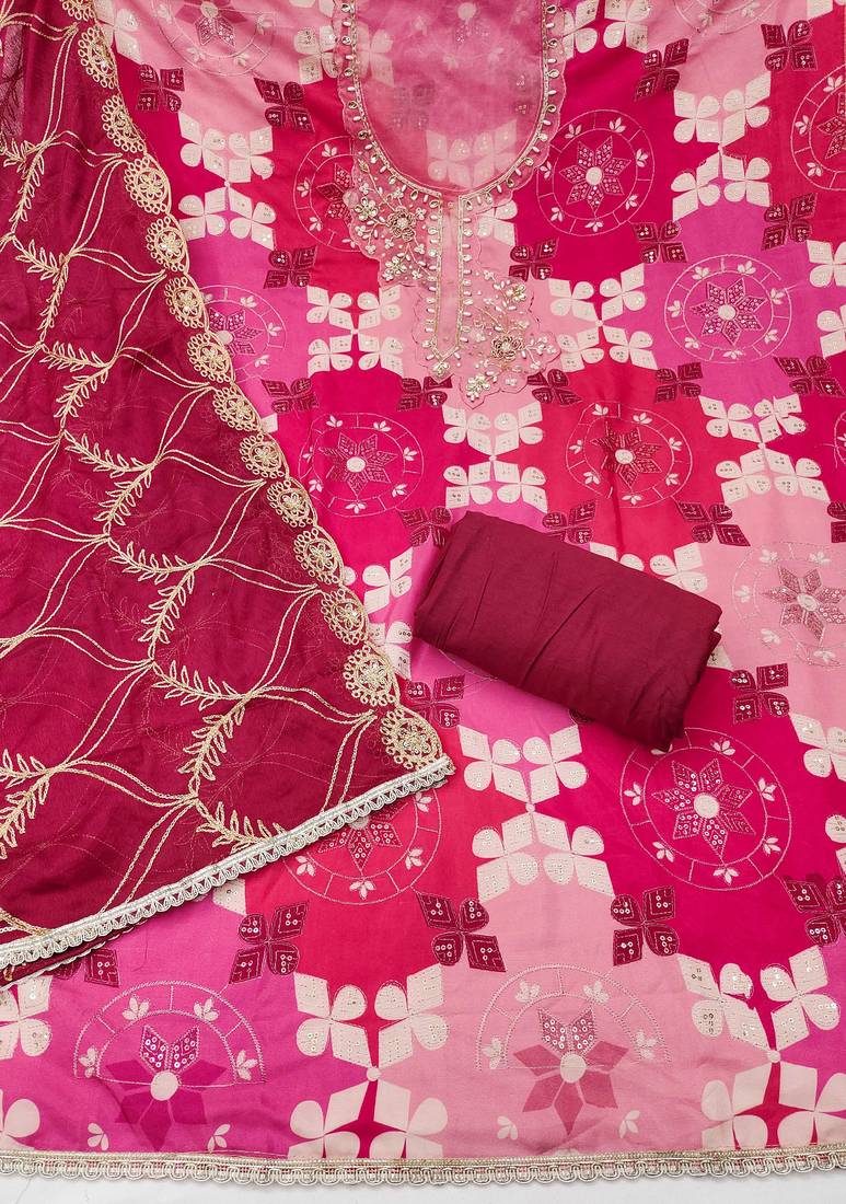 Magenta cotton silk printed unstitched dress material