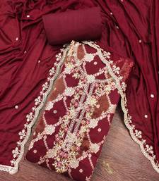 Maroon cotton silk woven unstitched dress material