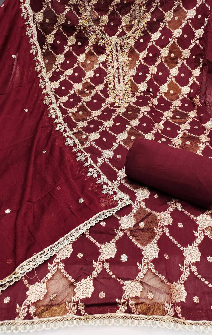 | Product Name | Maroon Cotton Silk Woven Unstitched Dress Material | |