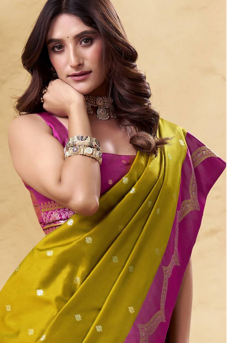 Product Name Mehendi Satin Silk Blend Woven Saree With Unstitched Blouse Piece