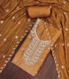 Mustard viscose georgette embroidered unstitched dress material