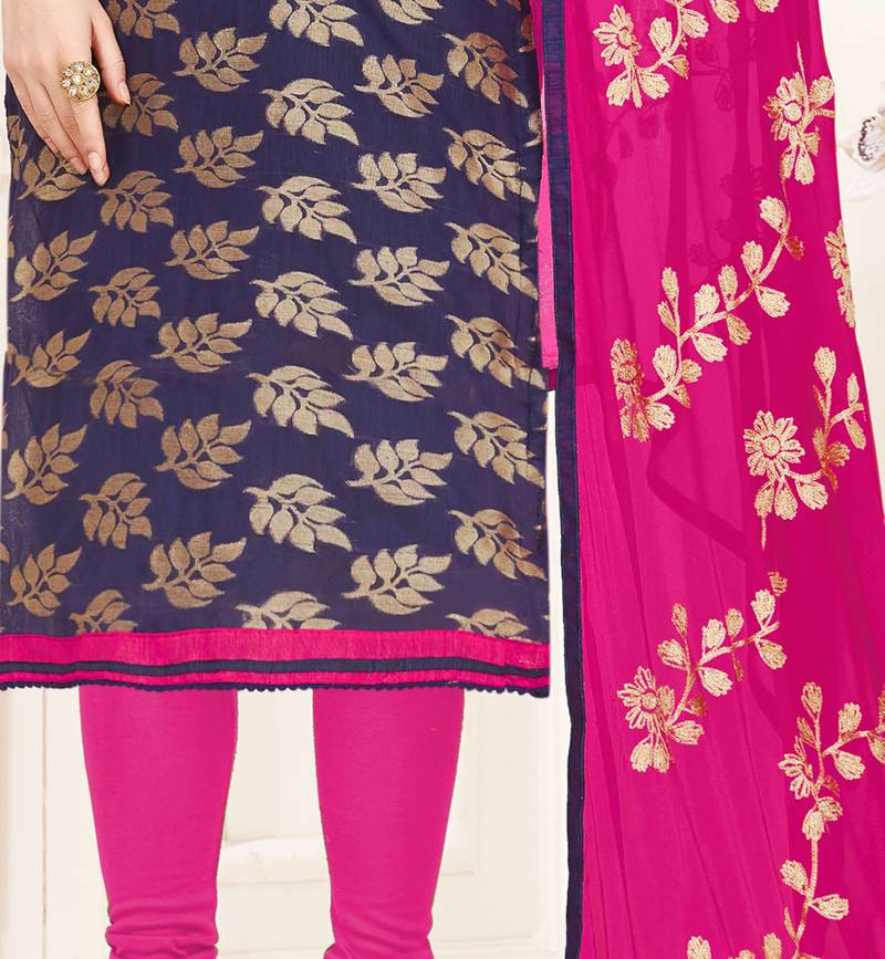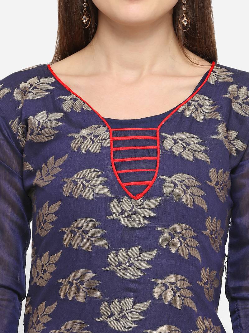 Navy-blue jacquard banarasi salwar unstitched