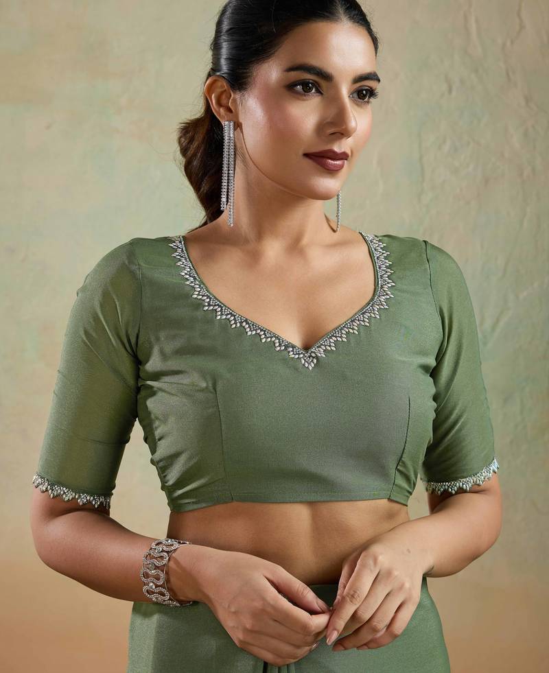| Product Name | Olive Georgette Embellished Saree With Unstitched Blouse Piece | |