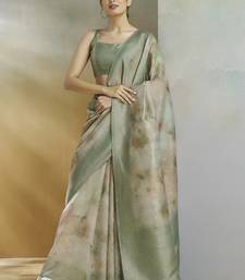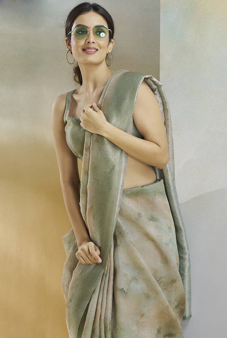 Olive handloom silk blend woven saree with unstitched blouse piece