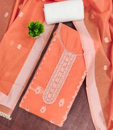 Orange cotton silk embellished unstitched dress material